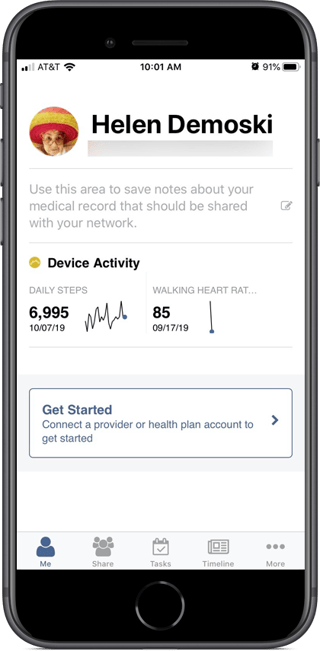 Any providers or health plans you have imported data from will display under "LINKED PROVIDERS AND HEALTH PLANS" on the "Me" or "More" tabs.
