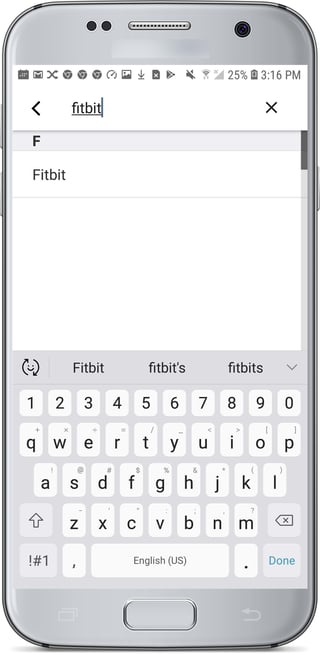 Using the resulting "Connect Provider" screen, touch the search icon (upper right), and enter "fitbit".