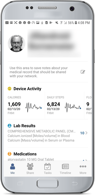 After completing your myFHR registration, you can optionally import device and health data into myFHR. Currently, you can only import data from Apple Health and Fitbit. Any device you have imported data from will display under "LINKED PROVIDERS AND HEALTH PLANS" on the "Me" or "More" tabs.
