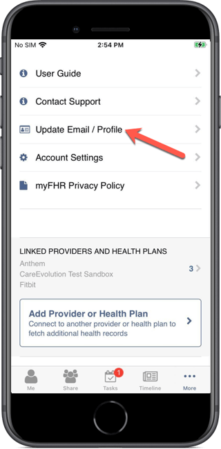 - Open the email sent to your updated email address, and click the link to finish changing your email address. You will then be taken back to the myFHR Profile screen.